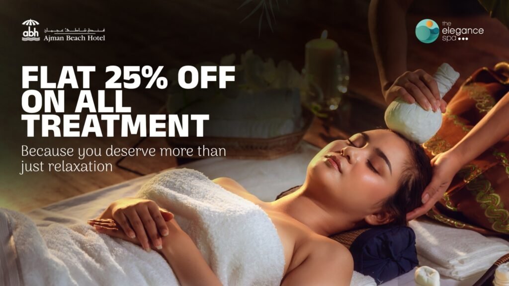 Experience ultimate relaxation at Ajman Beach Hotel with Elegance Spa, where the soothing sound of the waves blends perfectly with the healing touch of our expert therapists. From Swedish and Thai massage to Deep Tissue therapies, every treatment is designed to melt away stress and restore harmony. Just steps from the sea, indulge in the best spa massage in Ajman and enjoy a truly serene beachside escape.